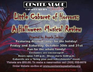 Contact us if you would like an original cabaret brought to you theater or venue! We know our spooky songs from musicals and movies. Also experience with Christmas, Valentine's Day, and other themed shows.